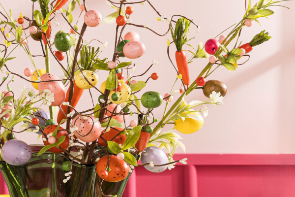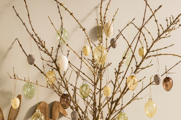 Ga voor een mooie vertakte paastak of enkele losse takken in een vaas. Zorg dat de tak stevig staat en genoeg ruimte heeft voor decoratie.