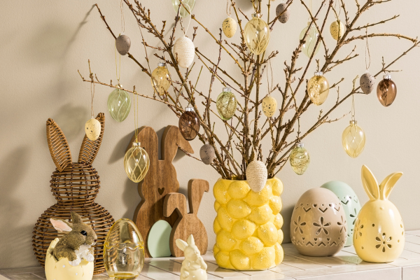 - Minimalistische paastak: Houd het rustig met een paar subtiele hangers in neutrale tinten zoals wit, beige of hout. Perfect voor wie houdt van een eenvoudige, stijlvolle paassfeer.