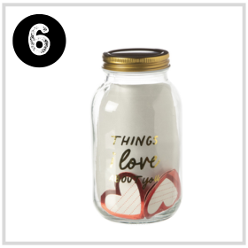 Romanticus opgelet! Schrijf lieve woorden, herinneringen of grappige momenten op briefjes en vul deze liefdespot. Telkens wanneer zij een briefje leest, zal zij herinnerd worden aan jullie liefde.