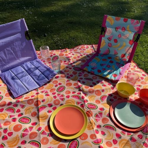 Een geslaagde picknick begint met de juiste basis: een gezellig picknickkleed. En zeg nou zelf, dat fruitige Xenos-kleed vol zomerse printjes maakt de sfeer toch meteen? Leg ‘m neer in het park, op het strand of gewoon in je tuin en je zit meteen goed. Wil je net wat comfortabeler zitten? Dan zijn de kleurrijke opvouwbare picknickstoeltjes met rugleuning echt een uitkomst. Ze zijn lichtgewicht, makkelijk mee te nemen en zitten verrassend lekker. Voeg daar wat vrolijk servies, kleurrijke kommen en herbruikbare glazen aan toe, en je picknickplek voelt als een mini-vakantie in eigen land. Gezelligheid gegarandeerd!