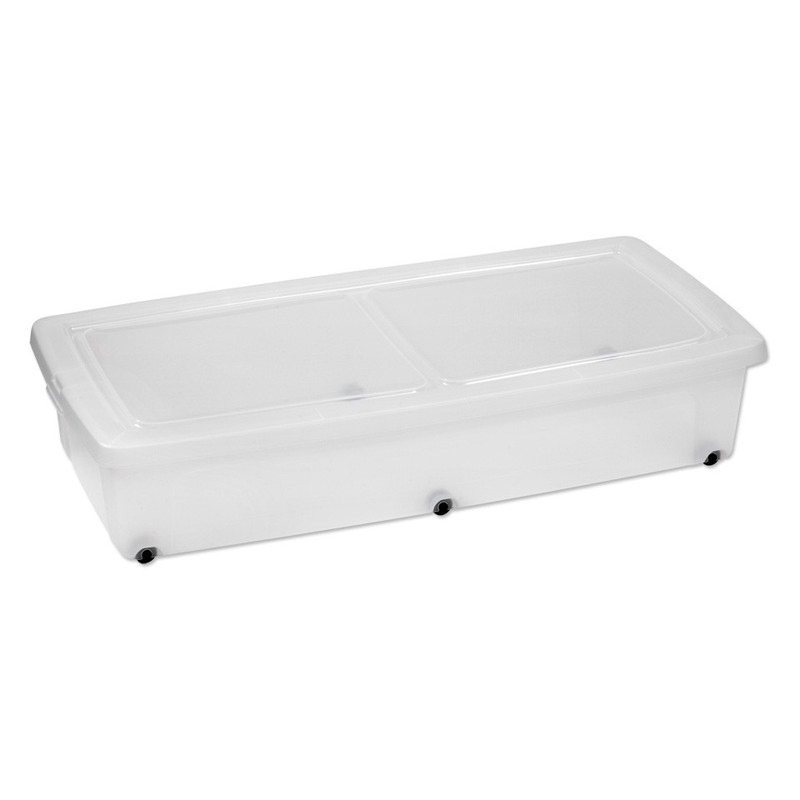 Iris biedt de perfecte oplossingen in opbergen. De Clearbox opbergboxen serie van Iris heeft een eenvoudig maar sterk design. Deze transparante opbergbox voor onder-het-bed is voorzien van wieltjes en een goed sluitend deksel en ideaal voor op de slaapkamer of een andere ruimte in huis. De inhoud van de opbergbox is 35 liter. De box is nestbaar en stapelbaar met behulp van de deksel. De Iris Clearbox opbergboxen serie biedt je de mogelijkheid om alle huishoudelijke artikelen zoals: speelgoed, schoenen, kleding en andere accessoires op te bergen. De opbergboxen kunnen handig gebruikt worden in de woonkamer, slaapkamer, keuken, badkamer, garage, kantoorruimte, kinderkamer en nog meer ruimtes.