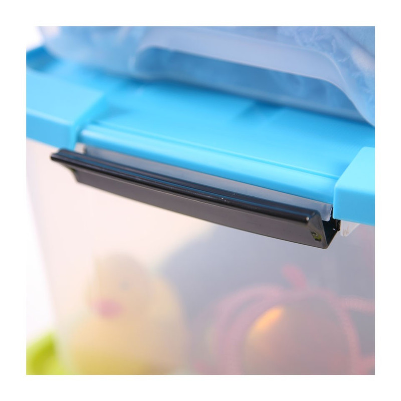 De transparante opbergbox is voorzien van een klemdeksel en stevige handgrepen. De box is nestbaar en stapelbaar met behulp van het deksel. Het design van de opbergbox zorgt voor een makkelijke grip van onderop en is ideaal om de opbergbox op hoogte te plaatsen. De inhoud van deze opbergbox is 15 liter. Set van 5 boxen met verschillende kleuren deksels.