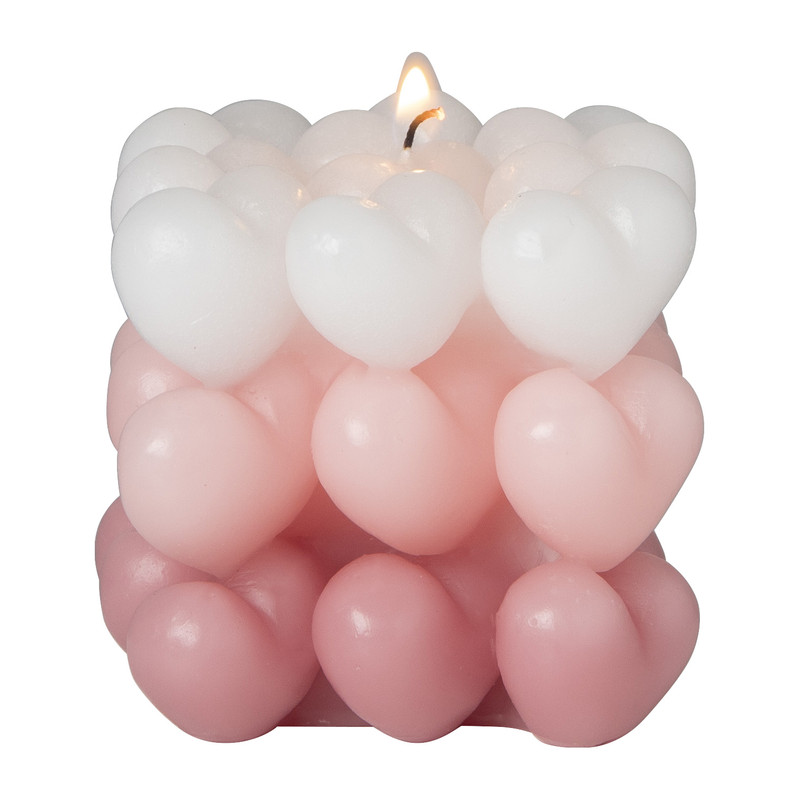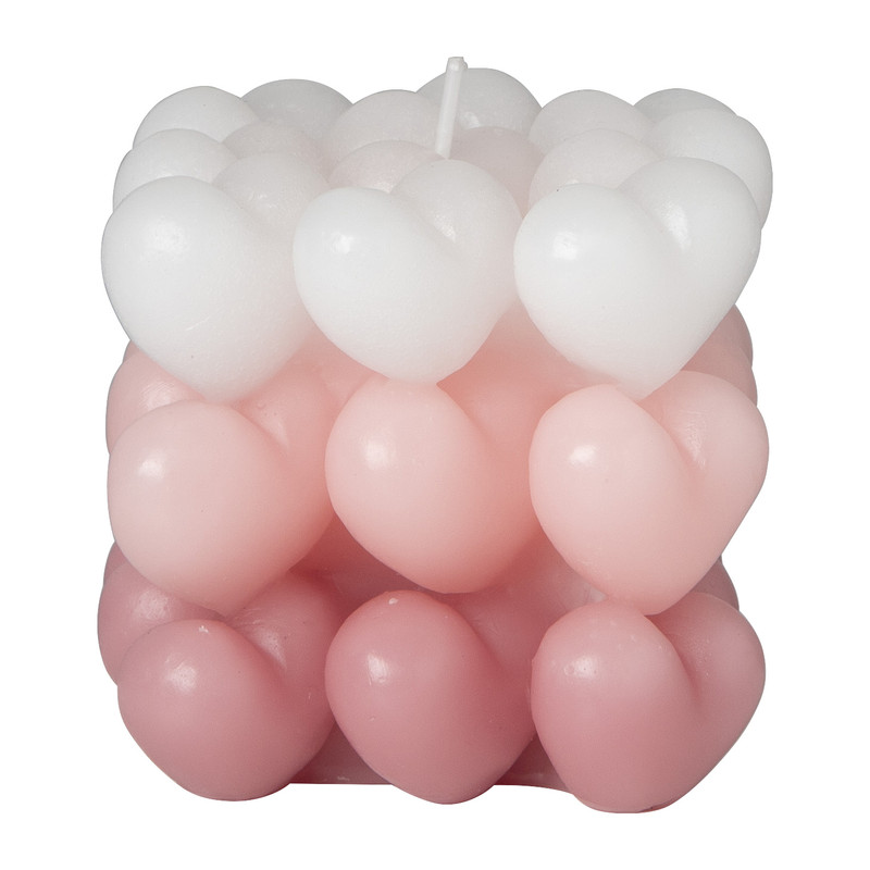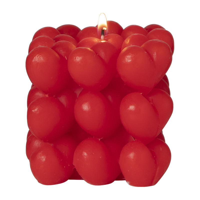 Oh yes, deze vierkante kaars met hartjes wil je hebben! De sierkaars heeft een opvallend en kleurrijk design. Perfect voor tijdens Valentijnsdag! Zet 'm neer op je saltontafel, eetkamertafel of nachtkastje voor een kleurrijk statement. De kaars is gemaakt van paraffine en heeft een hoogte, breedte en diepte van 8 cm.