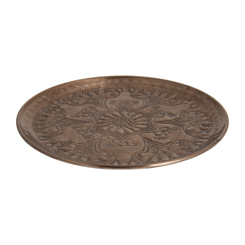 Decoreer dit kaarsenplateau met kaarsen en andere accessoires om er een echte eyecatcher van te maken. De schaal heeft een diameter van 38 cm en is gemaakt van metaal. De antiekgouden kleur in combinatie met het 'Etnic' design geeft een leuk effect.