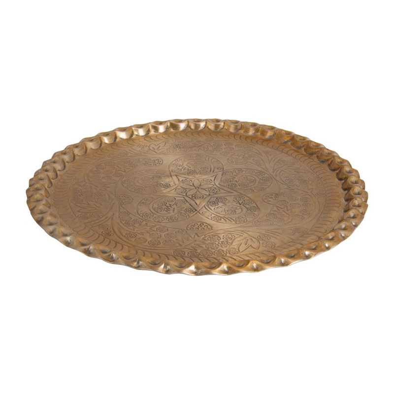 Decoreer dit kaarsenplateau met kaarsen en andere accessoires om er een echte eyecatcher van te maken. De schaal heeft een diameter van 48 cm en is gemaakt van metaal. De gouden kleur in combinatie met de schulprand geeft een leuk effect.