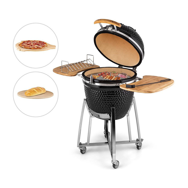 Gezellig bbq-en met het hele gezin? De keramische Kamado grill XL zorgt voor het perfecte stukje vlees. De volwassen maat Kamado met een oersterke dubbele glazuurlaag heeft een roestvrijstalen grillrooster met meer dan genoeg grillruimte! De kamado's zijn gemaakt van hoogwaardig keramisch materiaal, wat zorgt voor ideaal warmtetransport binnenin het kooktoestel en geleidelijke warmteverdeling. Met de warmteregelaar aan de onderzijde in combinatie met de regelbare margrietschijf aan de bovenzijde zorg je voor de perfecte temperatuurinstelling. Dit maakt de keramische bbq geschikt voor veelzijdige toepassing, zoals grillen, braden, stoven, garen en roken.