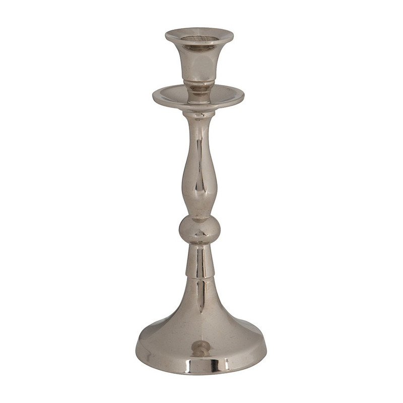 Deze kandelaar, geschikt voor een dinerkaars, brengt romantiek in je interieur. De zilveren kandelaar is geschikt voor 1 dinerkaars. Een stijlvolle decoratie voor op je eettafel, vensterbank of dressoir. De kandelaar is 21 cm hoog en heeft een diameter van 9 cm. De kandelaar is gemakkelijk op te bergen, doordat je de onderdelen van elkaar af kunt draaien.