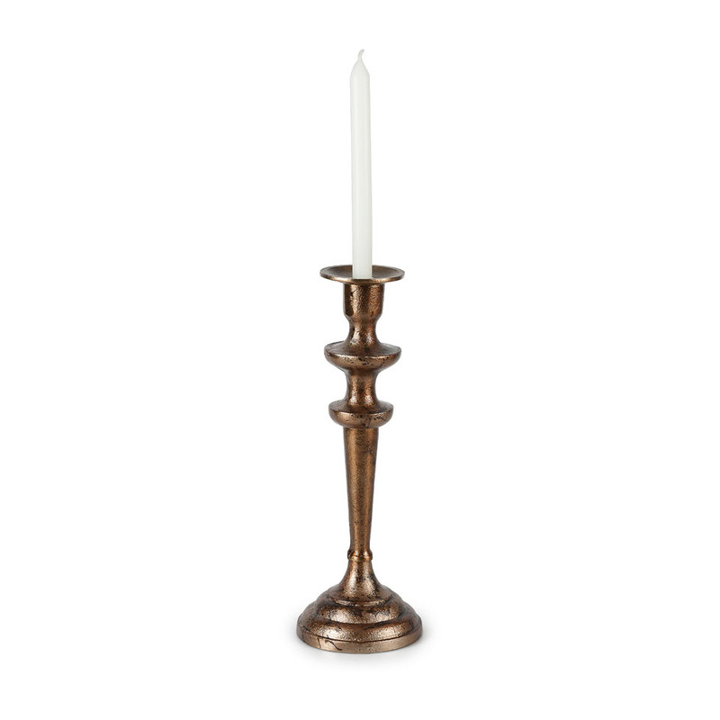 Deze robuuste kandelaar is geschikt voor dinerkaarsen. Een stijlvolle decoratie voor op tafel, maar ook erg chique in de vensterbank of op een kastje. De kandelaar is 28 cm hoog en heeft een diameter van 13 cm. Dankzij de uitsparing bovenop de kandelaar, is deze geschikt voor dinerkaarsen. Shop jouw favoriet kleur kaarsen ook gemakkelijk online op Xenos.nl.