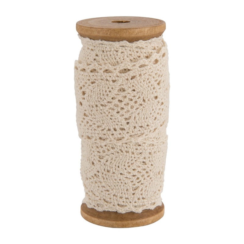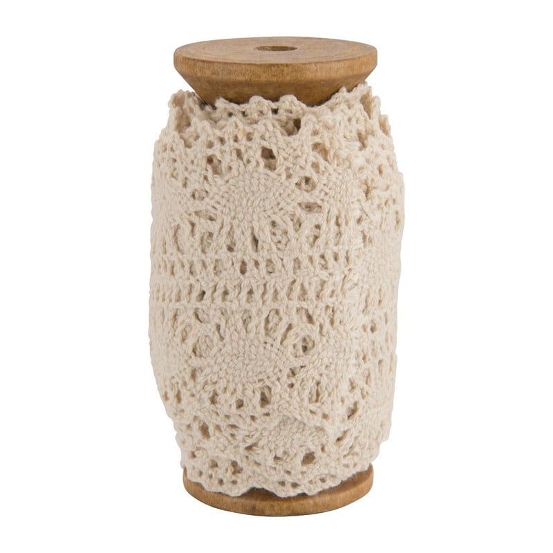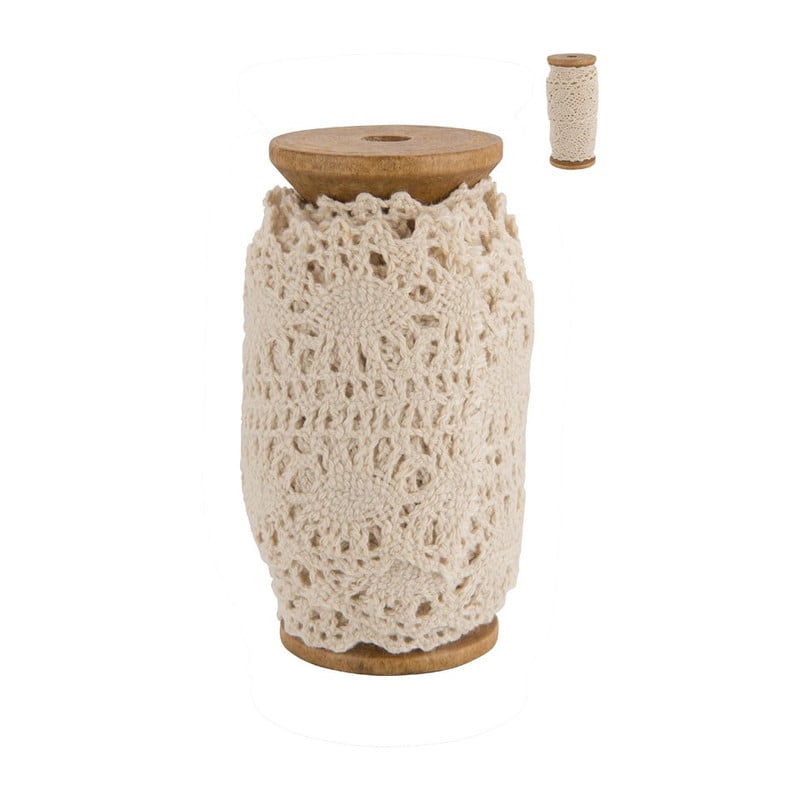 Maak de mooiste decoraties en versieringen met dit beige kant op houten klosje.