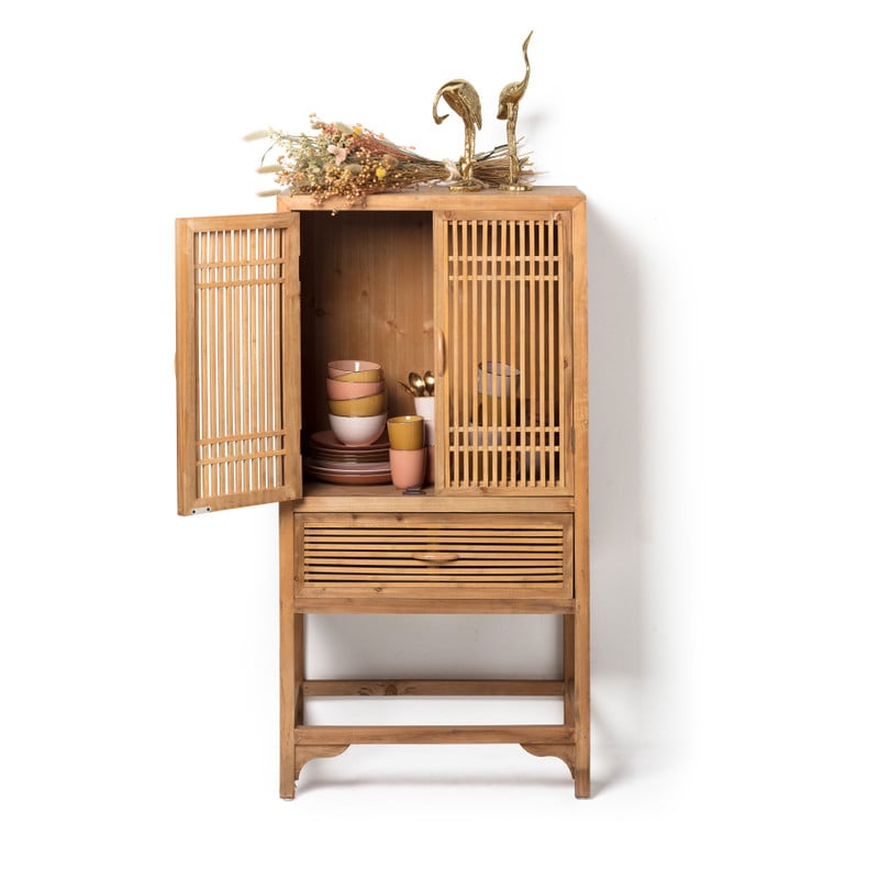 Natural living is een woontrend die ook dit jaar door blijft zetten. Natuurlijke materialen zijn super populair, want ze zijn niet alleen mooi maar hebben ook een duurzaam en milieuvriendelijk karakter. Ook fijn is dat duurzame materialen in ieder interieur passen; of je nu een modern of Scandinavisch ingericht huis hebt. Deze kast uit onze Tokyo lijn heeft een natuurlijke afwerking wat meteen een meer stoere uitstraling geeft. De kast Tokyo heeft 2 deurtjes en 1 laatje en is gemaakt van bamboe en hout.