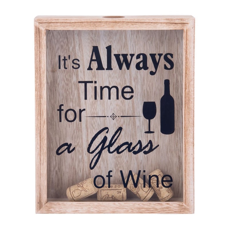 Ben jij een echte wijnliefhebber? Dan is dit kastje ideaal voor jou! Verzamel je wijnkurken in dit leuke kastje met glazen voorkant. Verzamel bijvoorbeeld kurken van een fles die je hebt gedronken tijdens bijzondere gebeurtenissen. Het kastje is 20,5x25,5 cm en heeft aan de bovenzijde een gat waar je de kurken in kan doen. Aan de achterzijde bevindt zich een ophangsysteem.