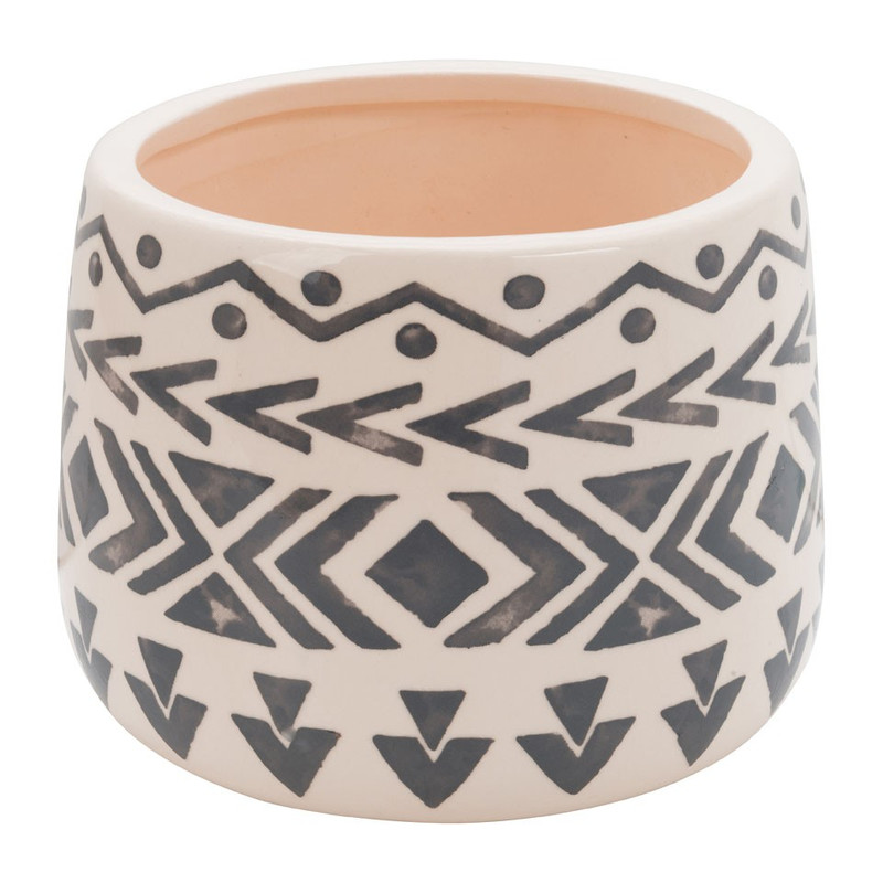 Met deze grote keramieke pot breng je de etnische invloeden in je huis! De witte pot met grijs design is geschikt om een mooie vetplant in te zetten, maar ook erg leuk als decoratie met verschillende accessoires erin.