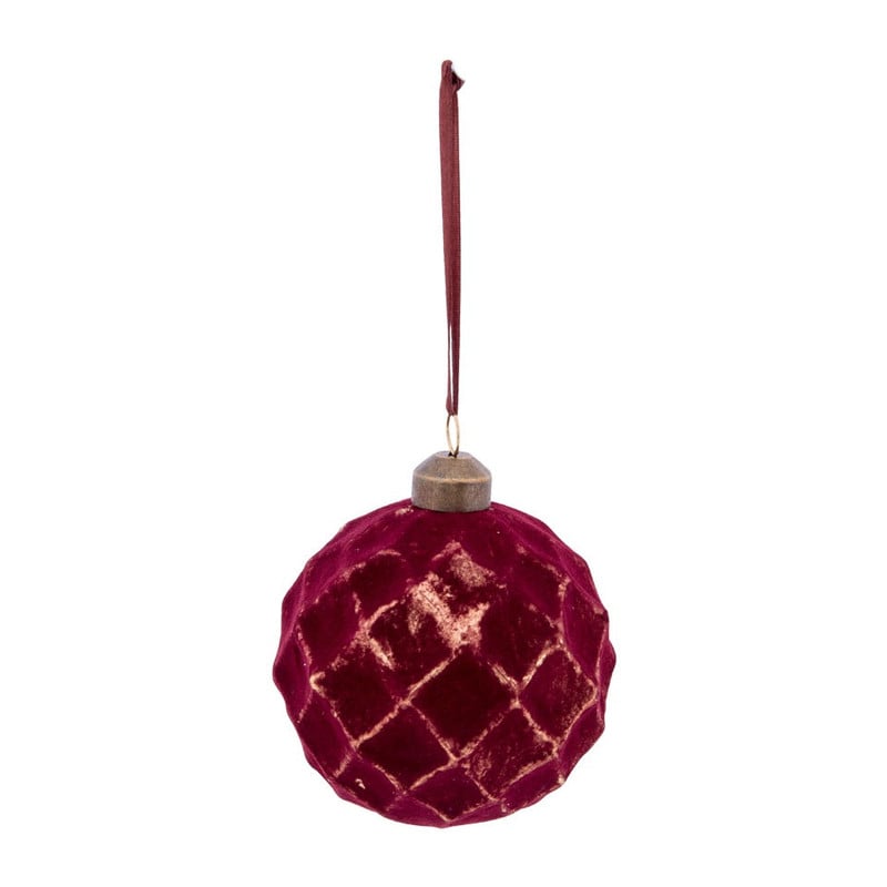 Kerstbal bordeaux relief ruit