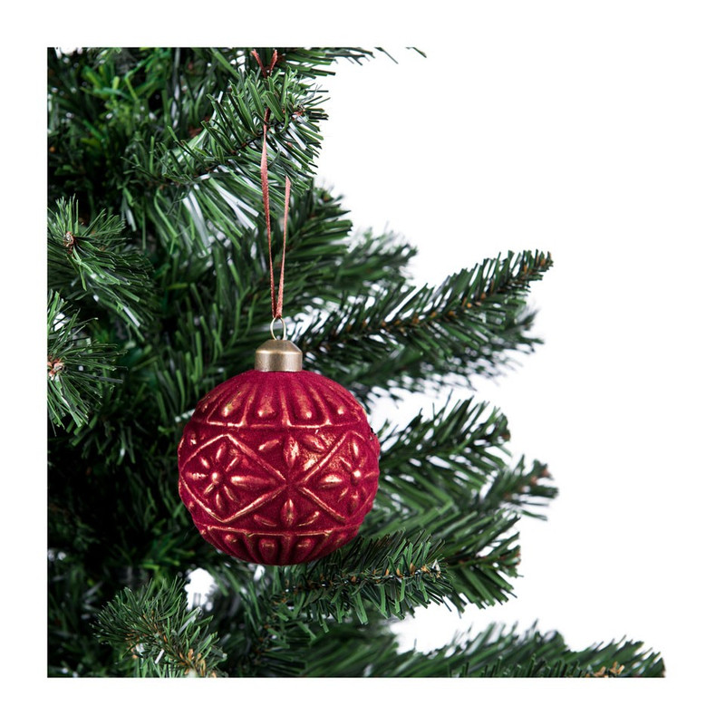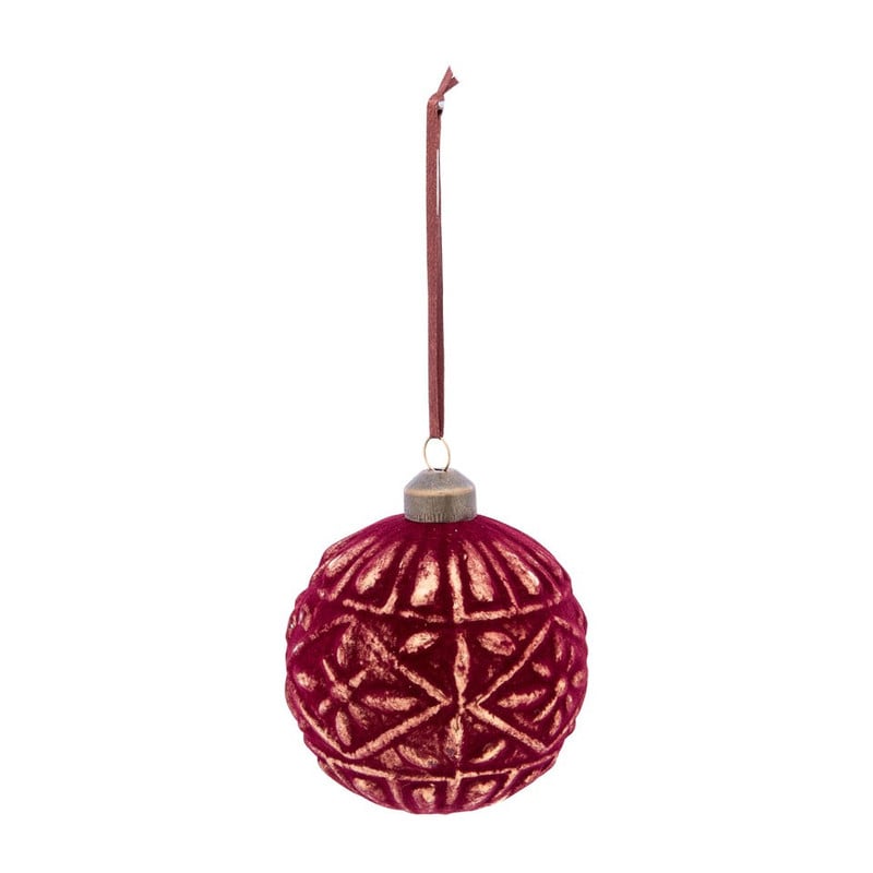 Kerstbal bordeaux relief ruit - glas