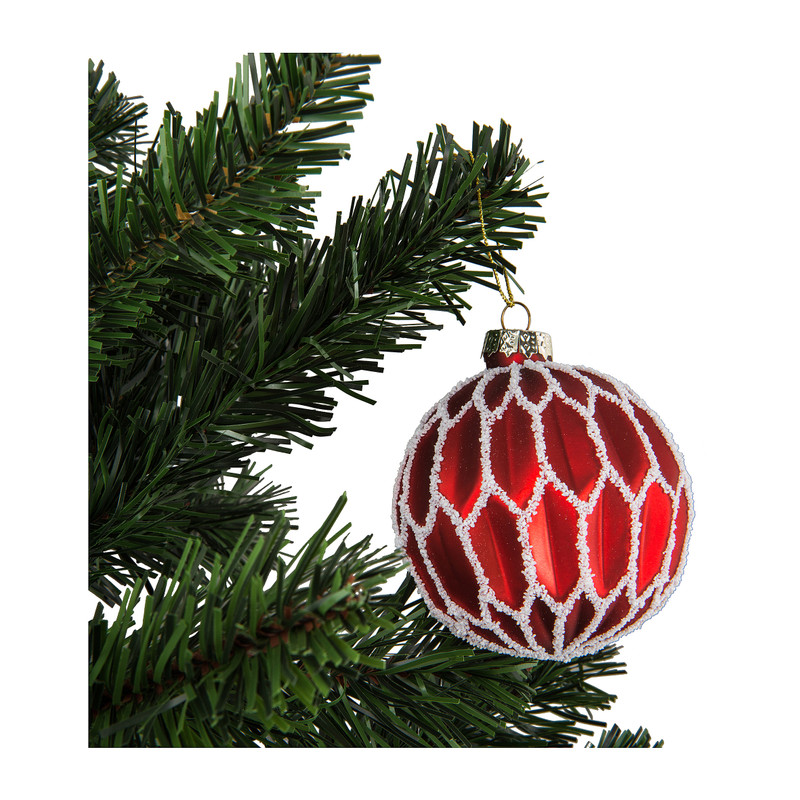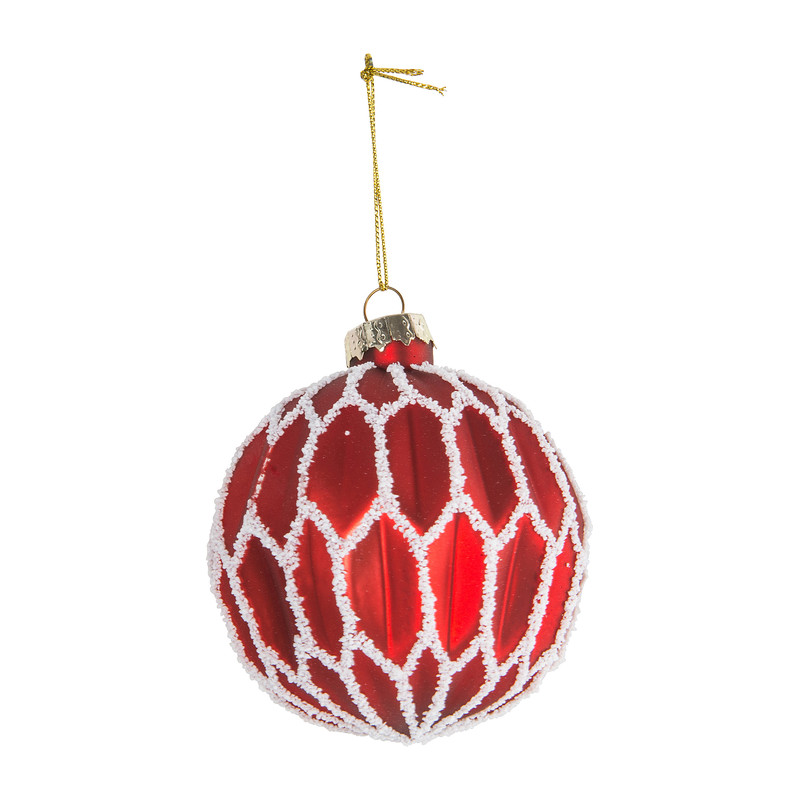 Heb jij Kerstbal - glas - rood reliëf wit? Schrijf een review!