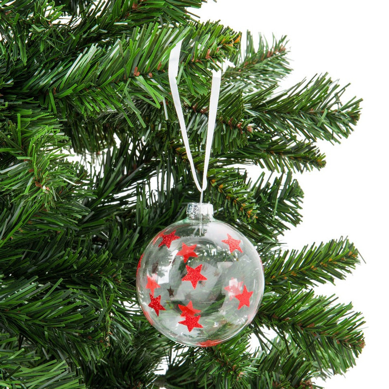 Kerstbal helder - rode ster - 8 cm