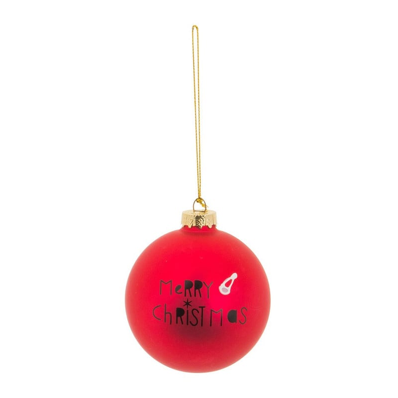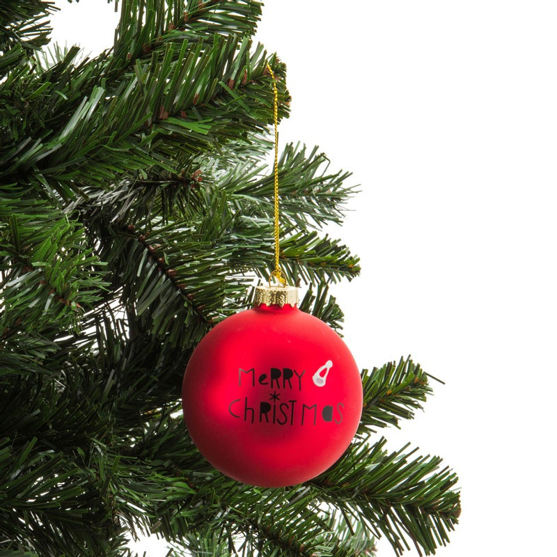 Vrolijke rode kerstbal met de tekst 'Merry Christmas'. De bal heeft een diameter van 8 cm en is gemaakt van glas. Combineer met andere rode accessoires om er een mooi geheel van te maken.