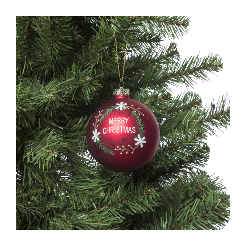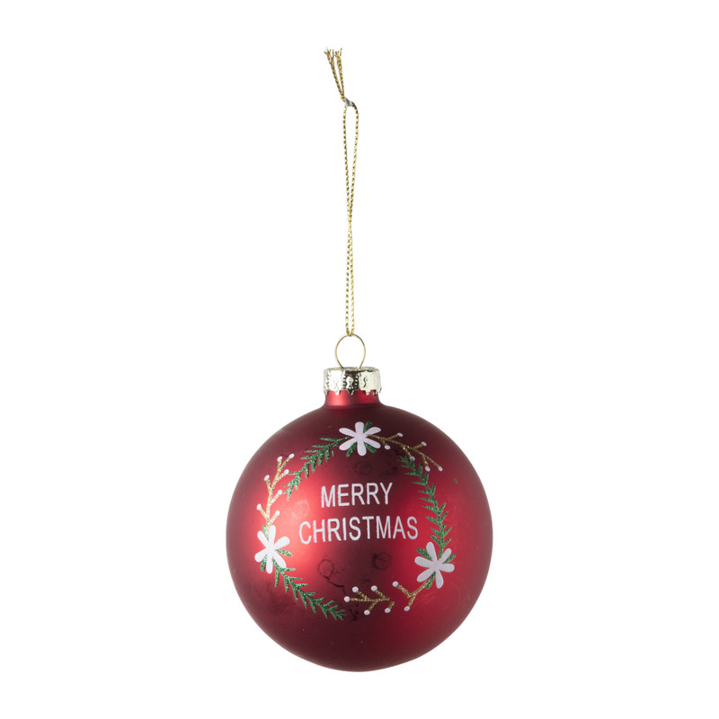 Kerstbal merry christmas - rood - ⌀8 cm