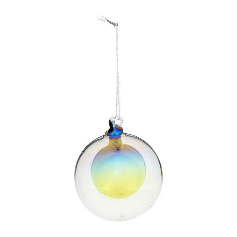 Glazen kerstbal met parelmoeren gloed en een groene minibal erin. Ziet er super chique uit in de kerstboom. Makkelijk op te hangen aan het zilveren koordje. Combineer met de andere kerstballen van Xenos om de kerstboom helemaal af te maken.