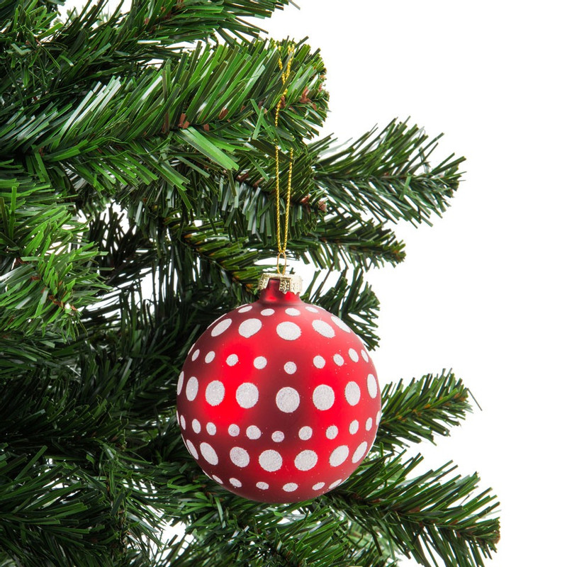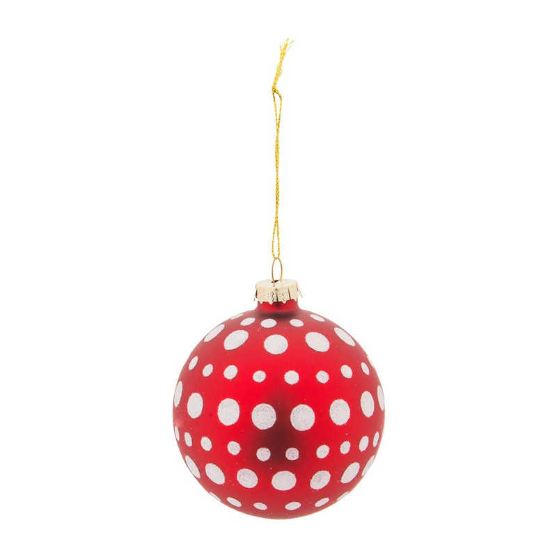 Kerstbal rood - grote stippen - 8 cm
