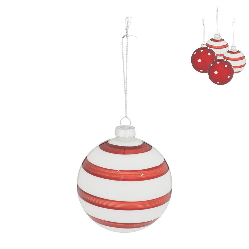 Heb jij Kerstbal stip/streep - 8 cm - rood/wit? Schrijf een review!