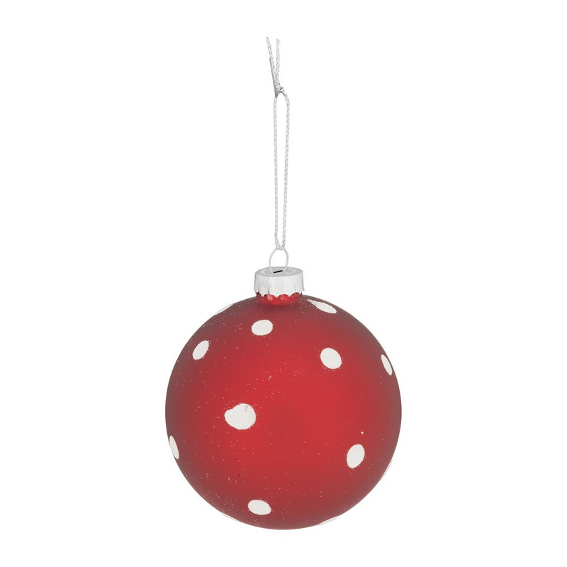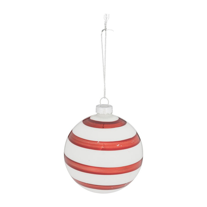 Maak de kerstboom compleet met deze hippe rood/witte kerstballen. Dit exemplaar is er in twee verschillende varianten. Een met stippen en een met strepen. Dankzij het zilveren touwtje kun je deze makkelijk ophangen in de boom. Combineer met andere rode en witte hangertjes en slingers om er een mooi geheel van te maken.