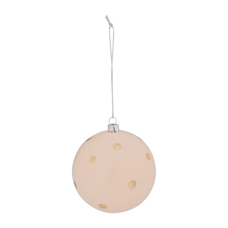 Chique lichtroze kerstbal met goudkleurige stippen. De kerstbal heeft een diameter van 8 cm en is 8 cm hoog. Ga voor een mooi geheel en combineer de trendy kerstbal met de andere varianten uit de Trendy-serie.
