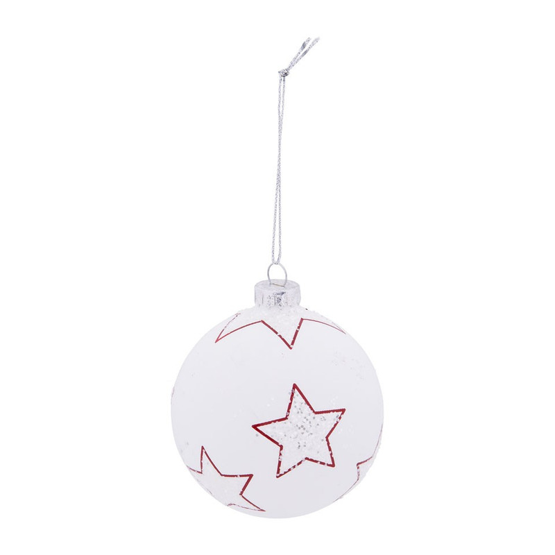 Een kestbal met een rode ster blijft leuk. Deze kerstbal heeft een wit met rode kleur. Combineer hem met een van de andere kerstballen van Xenos.