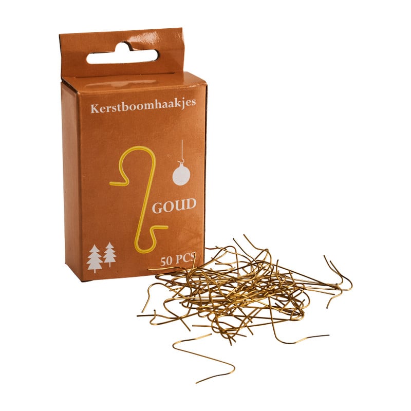 Hang je kerstballen met behulp van deze kerstboomhaakjes in je kerstboom. De haakjes zijn goudkleurig en zitten per 50 stuks verpakt. De kerstboomhaakjes zijn ook verkrijgbaar in het zilver.