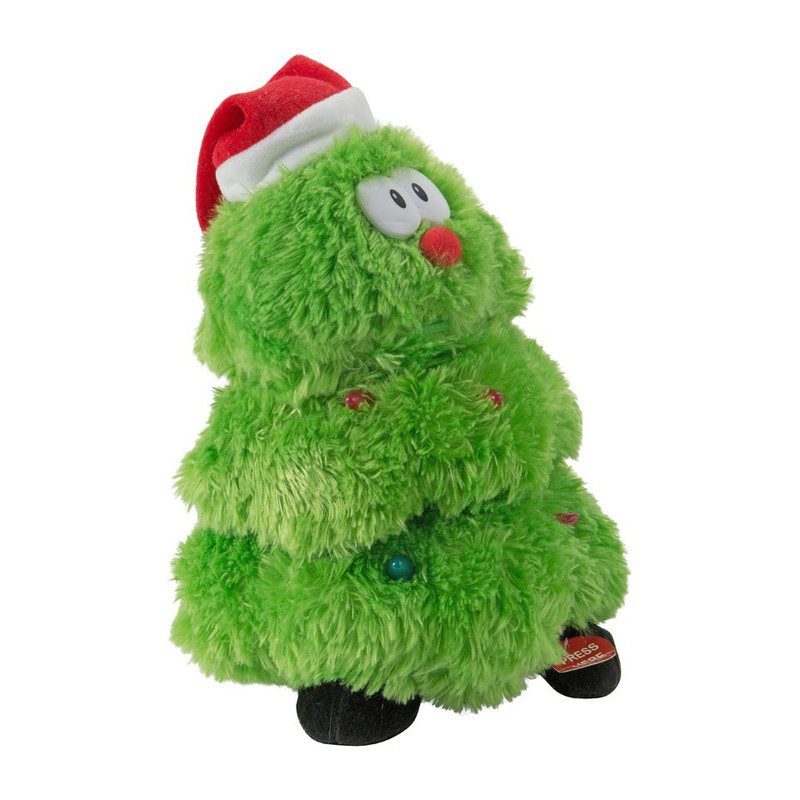 De kerstboom met muziek is een geweldige knuffel die geluid maakt en beweegt. Leuke eyecatcher met kerst. Wanneer je op zijn pootje drukt beweegt de boom en knipperen zijn lampjes. Hij beweegt zijn mond en zingt een vrolijk kerstliedje: 'Rocking around the Christmas tree' . Heel leuk als cadeau!