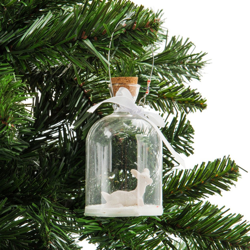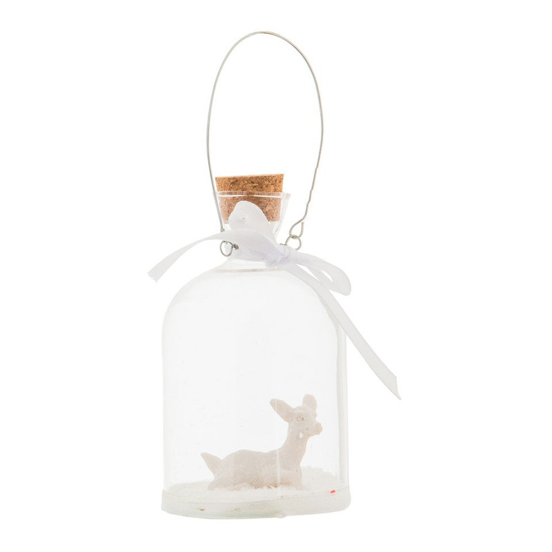 Met deze leuke kersthanger heb je een prachtige versiering voor de kerstboom. Het is een klein flesje met daarin een beeldschoon hertje. Omgeven door sneeuw kijkt het hertje vrolijk de wereld in. Dit schattige flesje kun je eenvoudig ophangen in de kerstboom. Maar je kan het ook neerzetten en het past daarom perfect in een zelfgemaakt kerststuk met dennenappels.