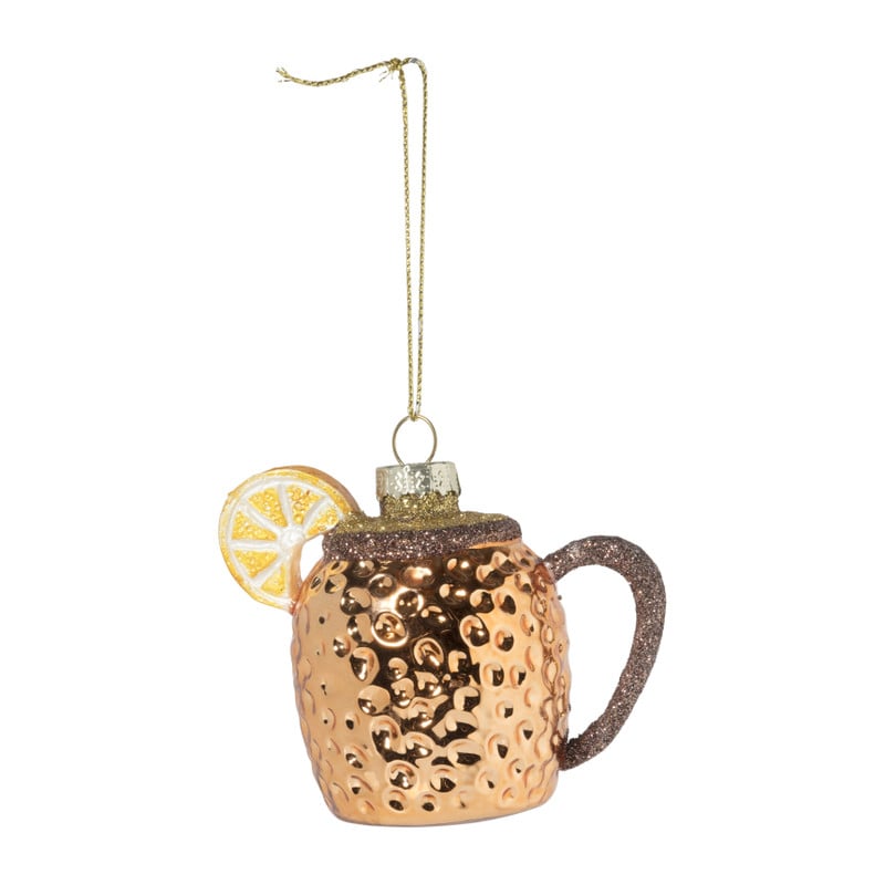 Op zoek naar iets anders dan de klassieke kerstbal? Laat de traditionele kerstdecoraties even links liggen en kies voor een beetje foute feestvreugde. Deze grappige glazen kersthanger is precies wat je nodig hebt om je kerstboom wat speelser te maken! Deze grappige kersthanger is nét even anders en tovert een glimlach op ieders gezicht. Of je nu je kerstboom een speelse touch wilt geven of op zoek bent naar een grappig cadeau voor vrienden of familie, deze kersthanger is de perfecte keuze. De kersthanger in de vorm van een Moscow Mule is gemaakt van glas, goudkleurig van kleur en heeft een hoogte van 8.5 cm, een breedte van 7.2 cm en een diepte van 5.5 cm. Mix & match met andere grappige opvallende kersthangers uit de Xenos collectie, mooie kerstverlichting en feestelijke slingers. More = more!