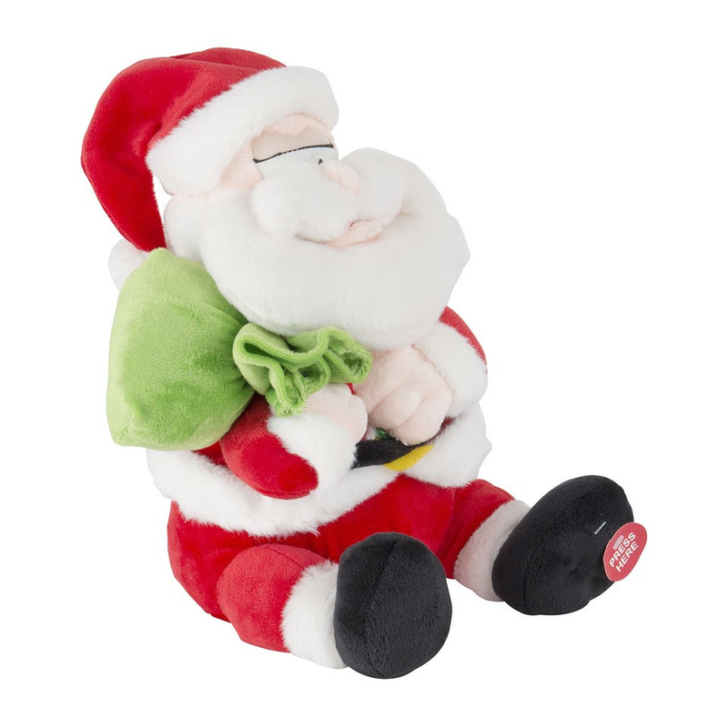Ga swingend de kerstdagen in met deze vrolijke zingende kerstman. Wanneer je op zijn voet drukt begint hij 'Santa Claus is comin' to town' te zingen.