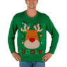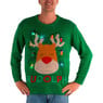 Feestelijke kersttrui in de maat M/L met lichtjes en een afbeelding van Rudolph. Steel de show deze feestdagen met een kersttrui. Zonder foute kersttrui hoor je er tegenwoordig niet meer bij! Deze gebreide kersttrui is groen van kleur met Rudolph erop afgebeeld. In de trui zit een geheim vakje met een klein zwart doosje erin met een knopje erop. Wanneer je op de knop drukt gaan er allerlei lampjes in verschillende kleuren branden. De verlichting werkt op een batterij, deze is inbegrepen. Let op! Je kunt de kersttrui niet in de wasmachine wassen, behandel vlekken plaatselijk.