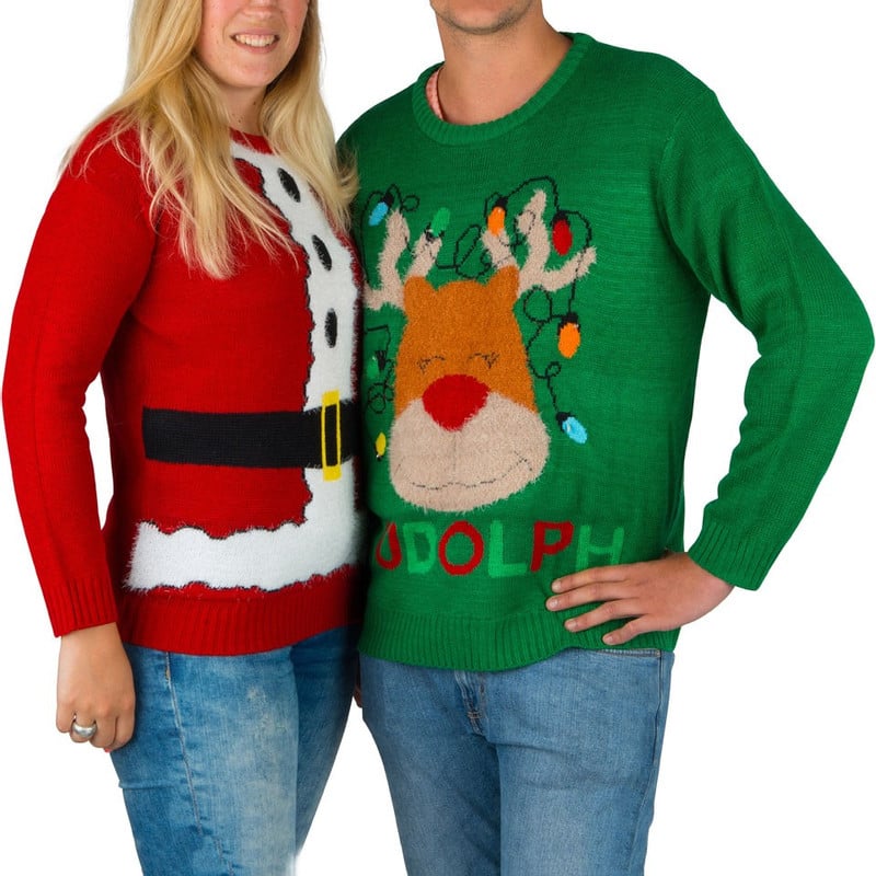Tover jezelf om tot de kerstman met deze leuke kersttrui Santa met muziek. Steel de show deze feestdagen met een kersttrui. Zonder foute kersttrui hoor je er tegenwoordig niet meer bij! Deze gebreide kersttrui is rood van kleur met het bovenlijf van de kerstman erop afgebeeld. In de trui zit een geheim vakje met een klein wit doosje erin met een knopje erop. Wanneer je op de knop drukt speelt het kerstliedje 'santa claus is coming to town' af. De muziek werkt op een batterij, deze is inbegrepen. Let op! Je kunt de kersttrui niet in de wasmachine wassen, behandel vlekken plaatselijk.