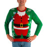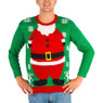 Tover jezelf om tot de kerstman met deze foute kersttrui Santa met verlichting. Steel de show deze feestdagen met een kersttrui. Zonder foute kersttrui hoor je er tegenwoordig niet meer bij! Deze gebreide kersttrui is rood van kleur met het lijf van de kerstman erop afgebeeld. In de trui zit een geheim vakje met een klein zwart doosje erin met een knopje erop. Wanneer je op de knop drukt gaan er allerlei lampjes in verschillende kleuren branden. De verlichting werkt op een batterij, deze is inbegrepen. Let op! Je kunt de kersttrui niet in de wasmachine wassen, behandel vlekken plaatselijk.
