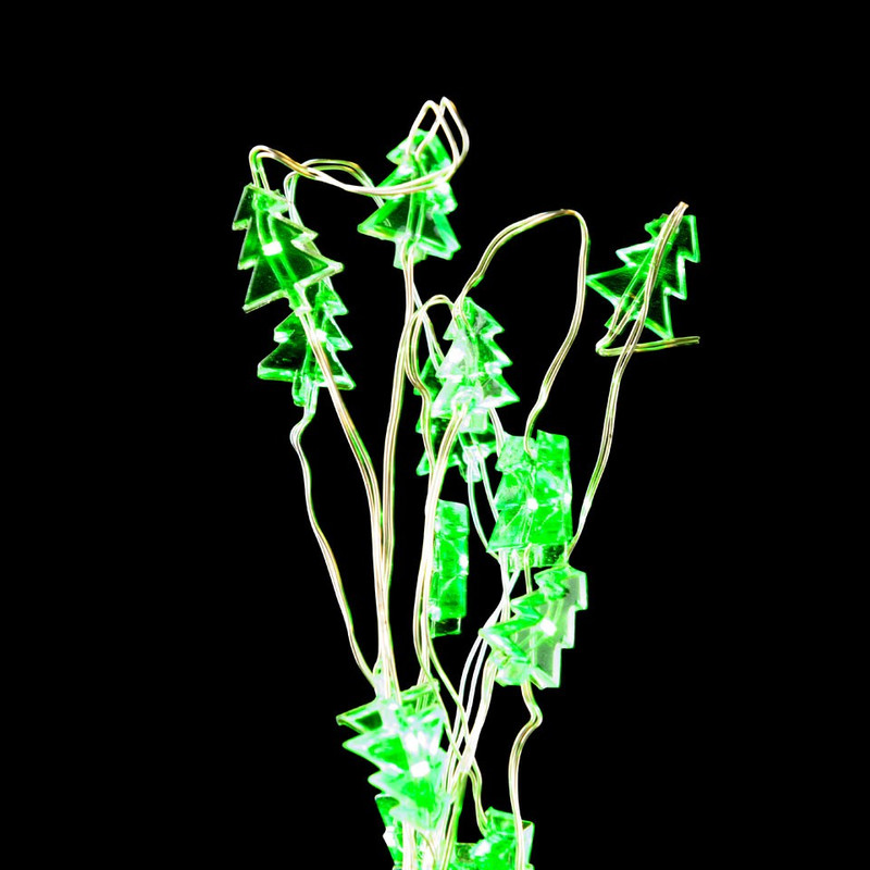 Deze LED lampjesslinger bevat 40 lampjes in de vorm van groene kerstboompjes. De LED lampjes zijn geschikt voor gebruik binnenshuis en werken op 3 AA batterijen. Je hebt dus geen stopcontact nodig. Ideaal!