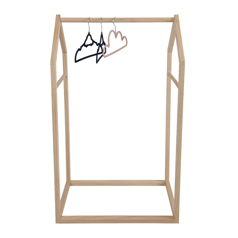 Hang de kinderkleding op in dit huisje van hout: een kledingrekje voor kinderen. Heb je teveel kinderkleren of geen ruimte voor een complete kledingkast? Dan is dit kledingrek in de vorm van een huisje de perfecte oplossing. Het rekje is gemaakt van hout en heeft een afmeting van 60x40x100 cm.