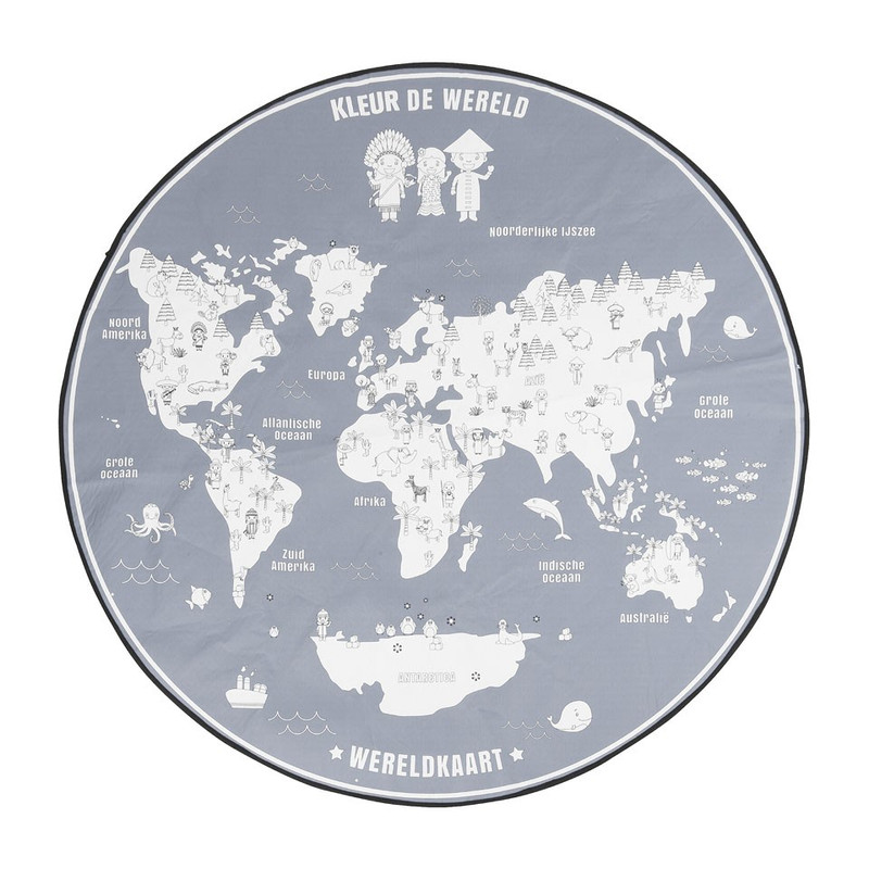 Kleur de wereld met dit coole kleur- en speelkleed! Het speelkleed bestaat uit een grote wereldkaart met allemaal dieren, mensen en boompjes die ingekleurd kunnen worden. Kinderen kunnen zo op een speelse manier de wereld ontdekken. Laat ze de hele wereld kleuren of alleen de plekken die ze bezocht hebben! Ook leuk als cadeau. In tegenstelling tot wat er op de verpakking staat, worden er geen stiften bijgeleverd. Bekijk ook onze andere speelkleden en wereldposters!