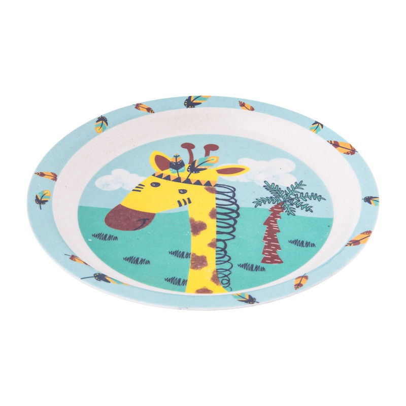 Dit leuke kinderservies bord is gemaakt van organische biologisch afbreekbare bamboevezel. Het bord heeft een bedrukking van een giraffe. Naast dit leuke bord is het ook mogelijk om de overige delen van het kinderservies aan te schaffen; bestek, drinkbeker en een kommetje. Zodat u een compleet setje heeft.