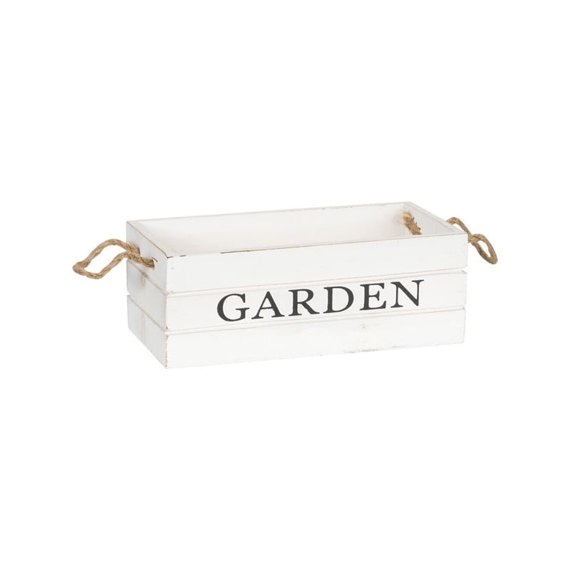 Kistje garden met touwgrepen - 25x12 cm - wit