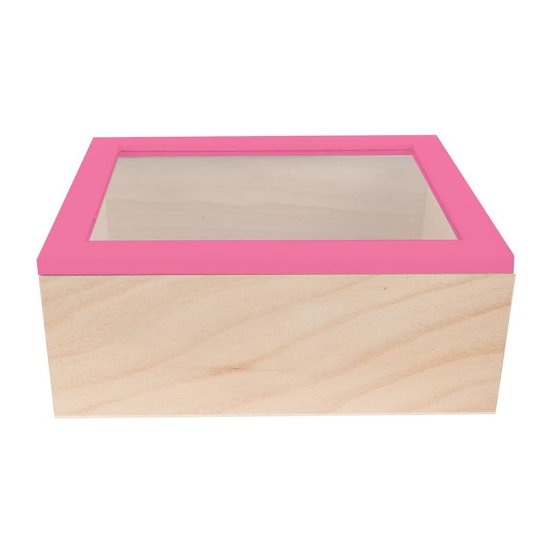 Deze kist is gemaakt van stevig hout. Door de twee scharnieren achterop het kistje gaat het leuke kistje gemakkelijk open en dicht. In het midden van de deksel ligt een glasplaat zodat je handig kan zien wat er in je kistje ligt. Gebruik ‘m voor sieraden, pennen, of andere mooie dingen. De trendy kistjes zijn verkrijgbaar in verschillende designs en maten. * Houten kist gedipte deksel roze * Trendy kleuren * Leuk en veelzijdig in gebruik