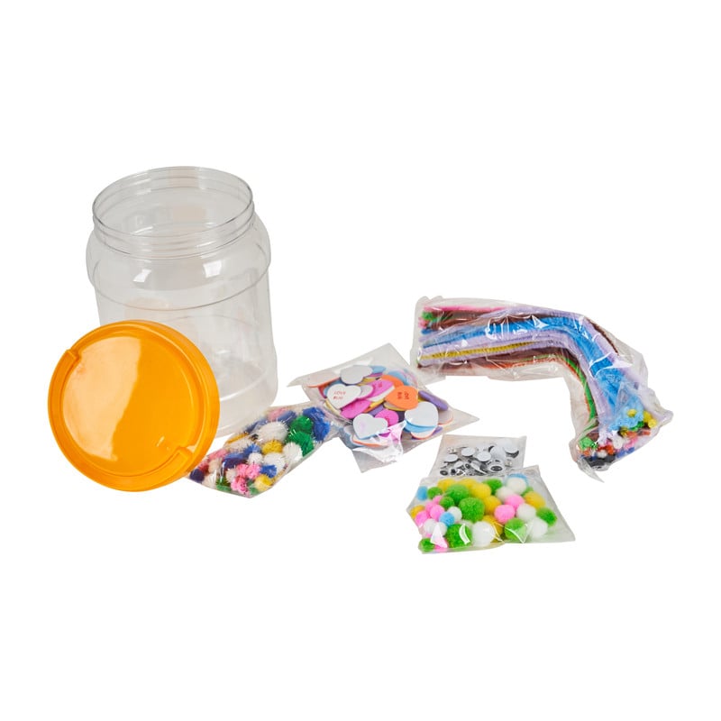 Deze knutselemmer zit vol met knutselmateriaal. Maarliefst 300 stuks! In de emmer zitten 4 verschillende materialen, waaronder chenilledraad, wiebeloogles en foam hartjes. Hier houd je de kids dus urenlang zoet mee.