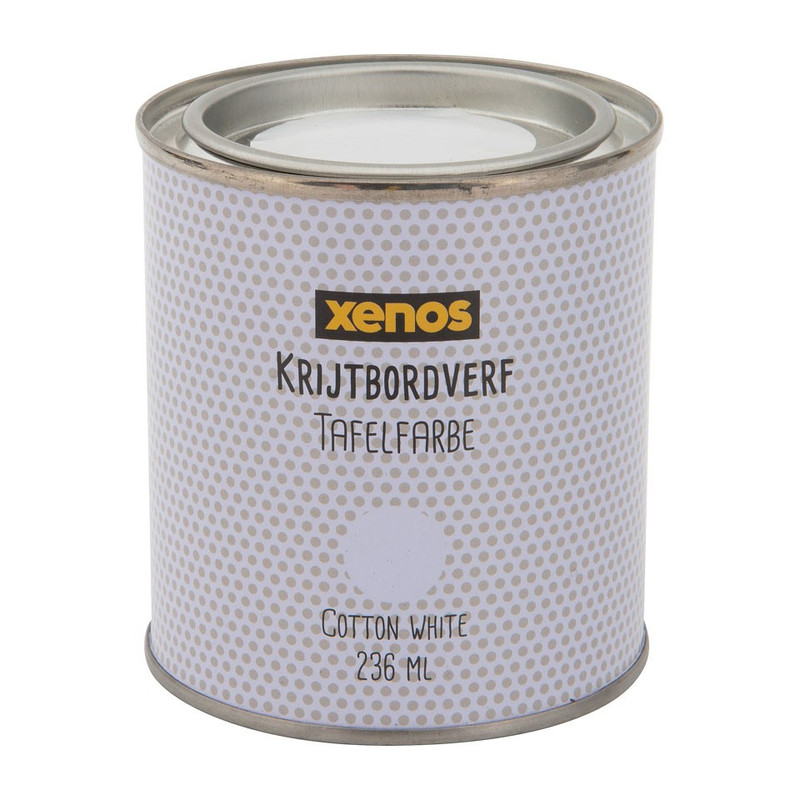 Schilder erop los met deze krijtbordverf in neutrale witte kleur. Dit blik met witte krijtbordverf van 236 ml bevat genoeg verf om een tijd mee te schilderen. De matte krijtbordverf op waterbasis is beschrijfbaar met krijt. Super leuk om een oud kastje mee op te knappen of een krijtbord mee op de muur te maken. De verf is geschikt voor muren, hout, papier en glas.