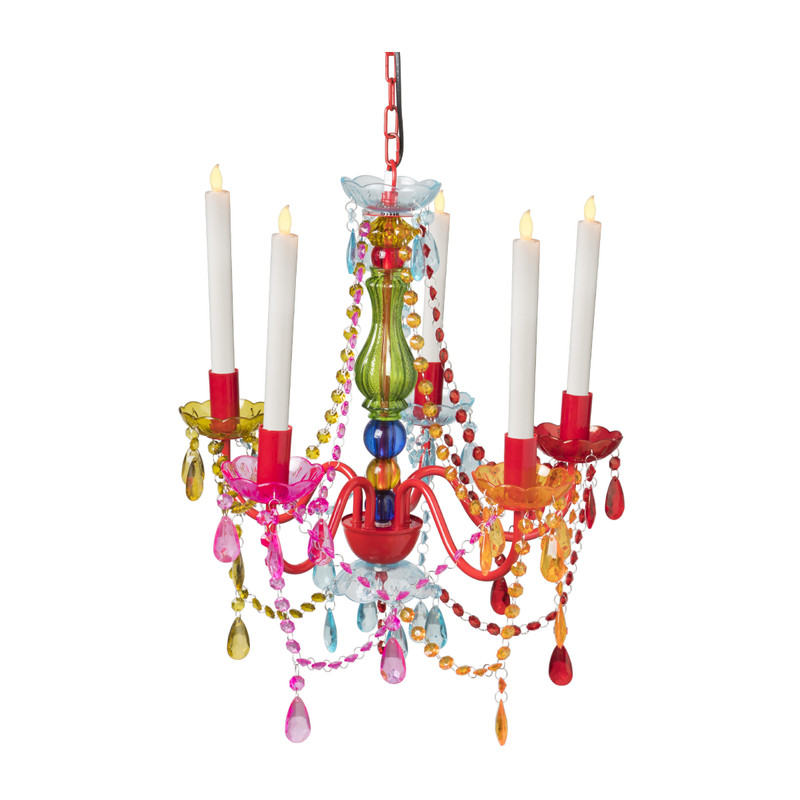 Deze vintage kroonluchter is een echte eyecatcher voor in huis. Hij is super kleurrijk, dus geeft een super leuk sfeertje. De lamp is gemaakt van glas en acryl en heeft de afmeting ø48x52 cm.