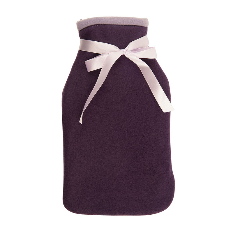 De kruik is gemaakt van rubber en heeft afneembare hoes van polyester. Het formaat van de kruik 26x17 cm en er kan 1000 ml water in. De handige draaidop sluit de paarse kruik goed af en hij is leuk afgewerkt met een lila strik.