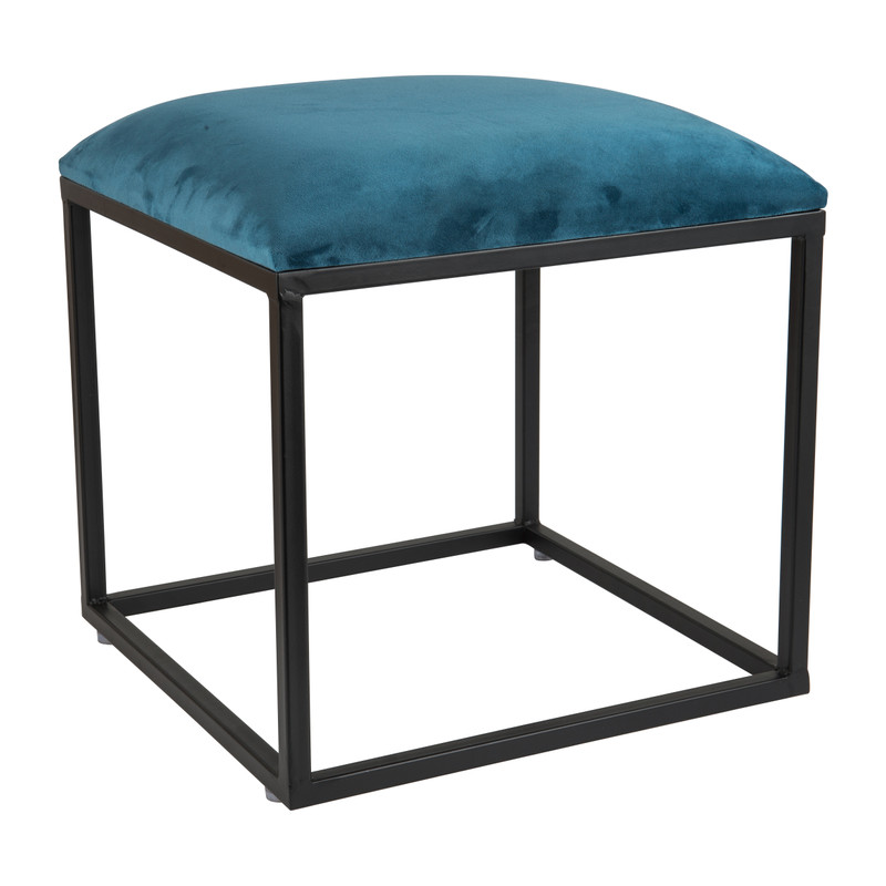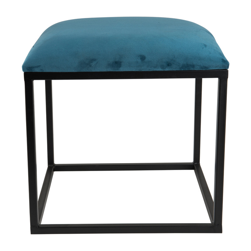 Geef je interieur een nieuwe look met dit trendy fluwelen krukje. De zitting is bekleed met fluweel in een blauwe kleur, hierdoor heeft het krukje een luxe en elegante uitstraling. De afmeting is 37x37x38 cm en het onderstel is van metaal. Het krukje is een ware eyecatcher in elk interieur!