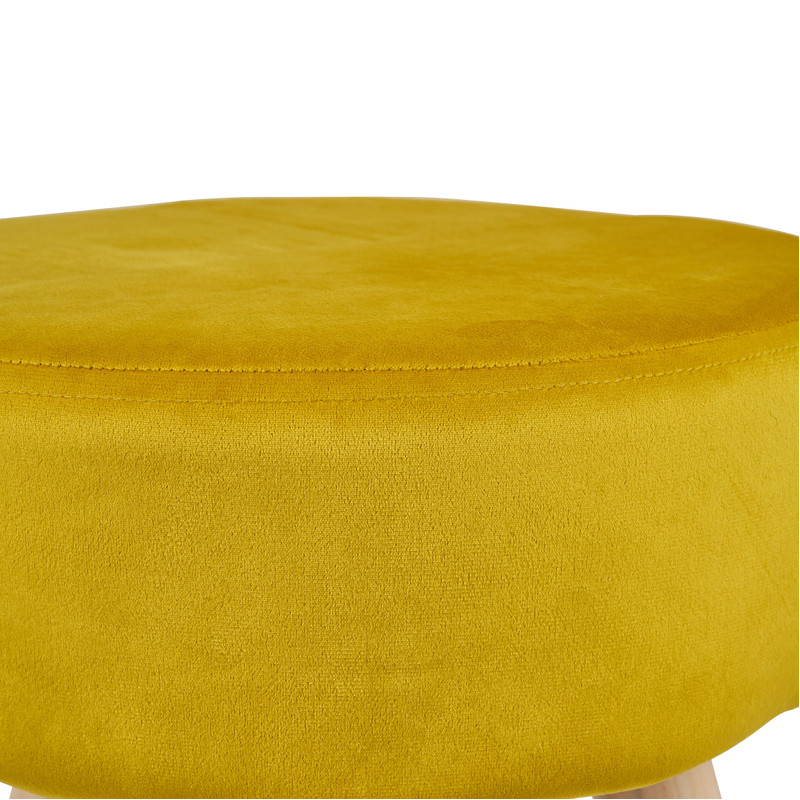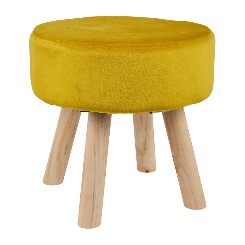 Dit krukje met houten poten heeft een chique velours bekleding. Het is heerlijk zacht en gele bekleding heeft een prachtige glans. Het krukje is stijlvol en multifunctioneel. Zet het neer in jouw hal en gebruik het om jouw schoenen aan te trekken. Of gebruik het als bijzettafel en zet een leuk dienblad erop. De diameter is 35 cm en de hoogte is ook 35 cm. Door het kleine formaat is het krukje zeer geschikt voor kinderen.
