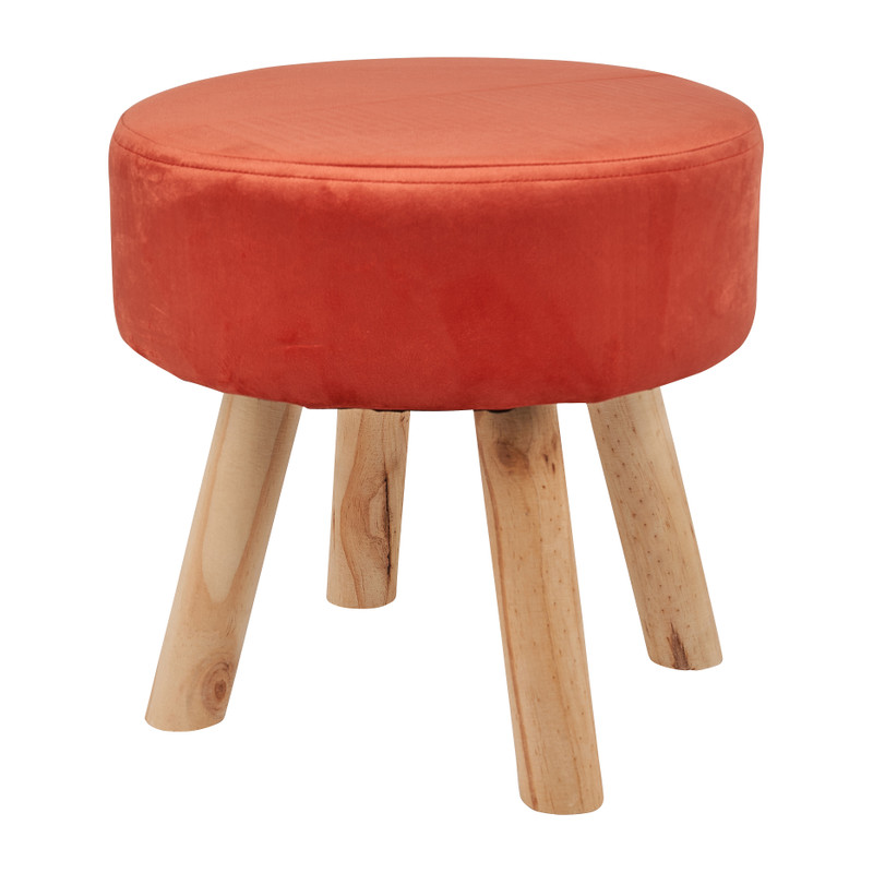 Dit krukje met houten poten heeft een chique velours bekleding. Het is heerlijk zacht en rode bekleding heeft een prachtige glans. Het krukje is stijlvol en multifunctioneel. Zet het neer in jouw hal en gebruik het om jouw schoenen aan te trekken. Of gebruik het als bijzettafel en zet een leuk dienblad erop. De diameter is 35 cm en de hoogte is ook 35 cm. Door het kleine formaat is het krukje zeer geschikt voor kinderen.