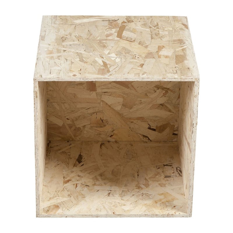 Deze kubus is gemaakt van chipwood. Dit is samengeperst hout. Het geeft een erg leuke en robuuste uitstraling aan het geheel. Gebruik deze kubus als bijzettafeltje of berg er tijdschriften en andere spullen in op. Erg leuk ter decoratie in een industrieel interieur.